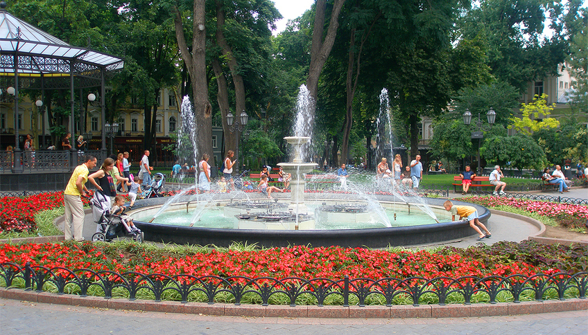 Этот фонтан (стоит отметить, что работает он только в теплое время года) находится в Городском саду и появился там к 210-й годовщине основания Одессы.