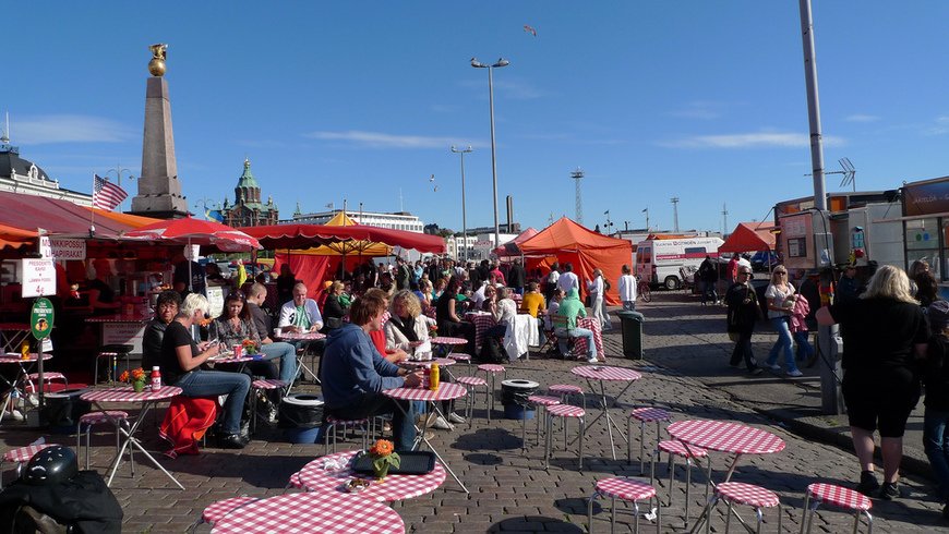 Рядом с парком Эспланады, около южного порта раскинулась еще одна известная площадь Хельсинки – Рыночная (Kauppatori). Жизнь на ней никогда не останавливается. Чтобы ощутить дух старого рынка, побродите по рядам, попробуйте морепродукты, маринованную сельдь или зеленый горошек из стручков, который финны едят вместо семечек.